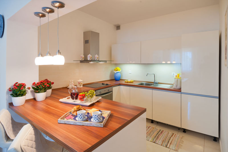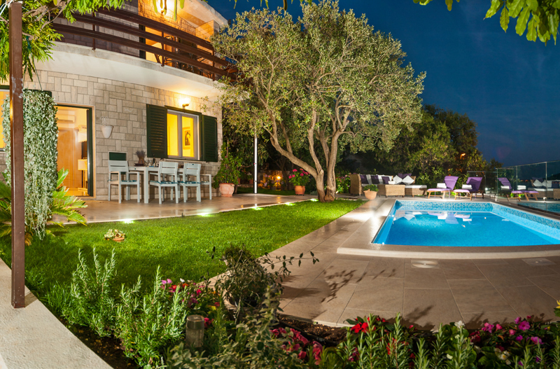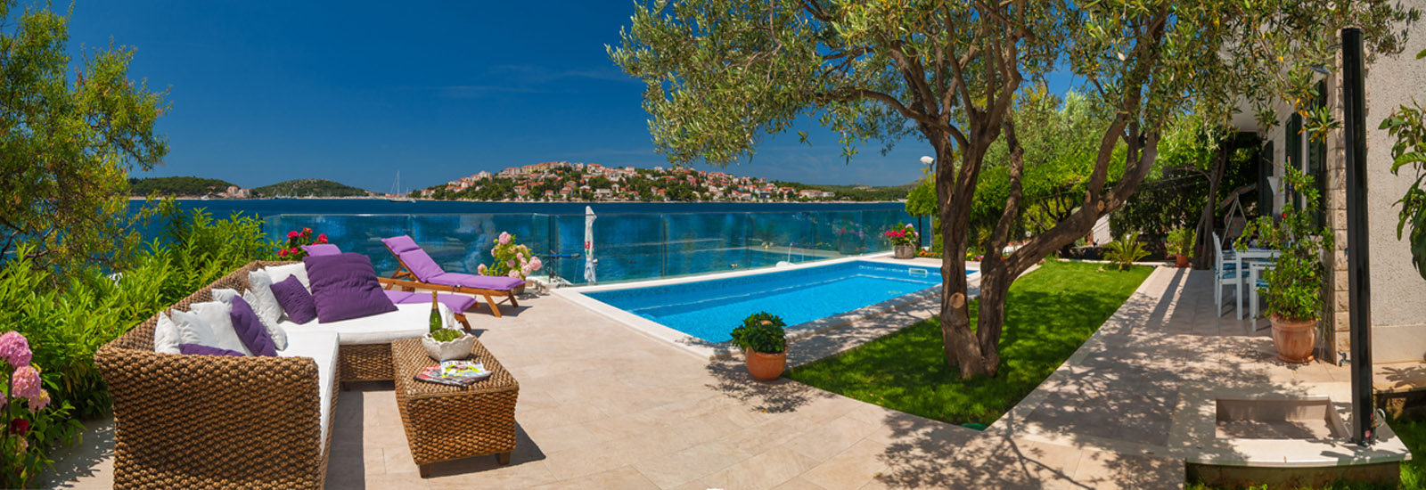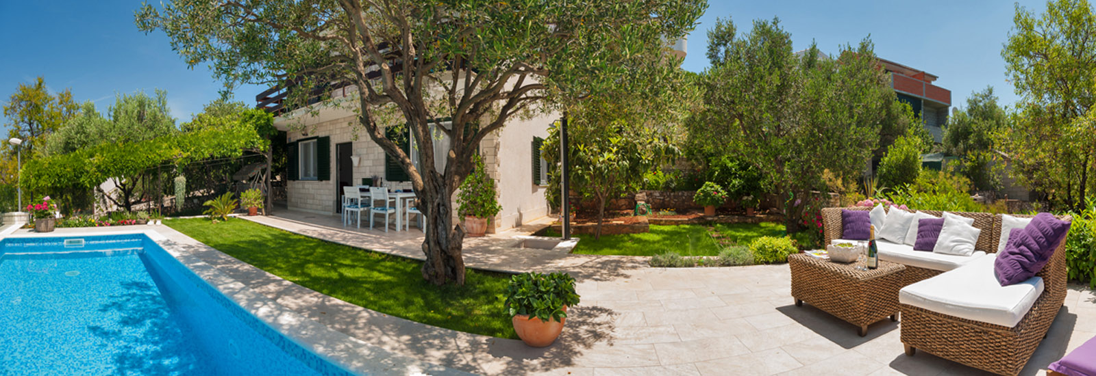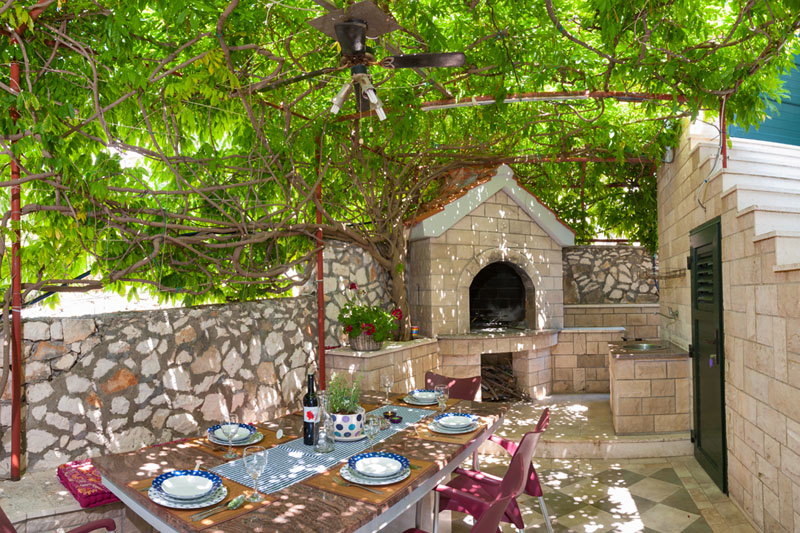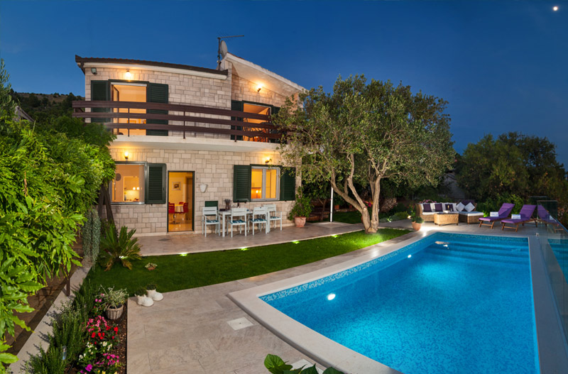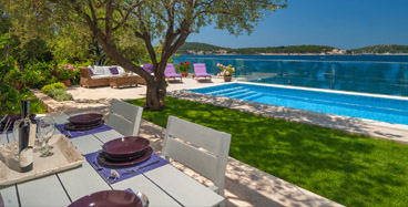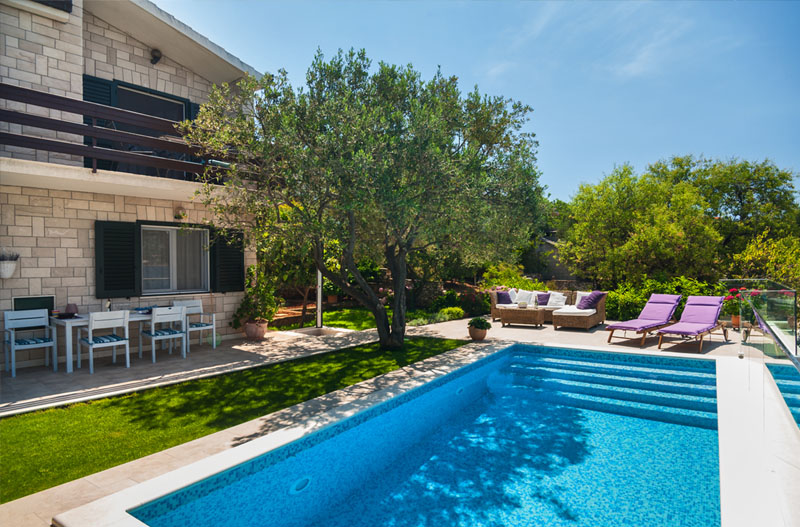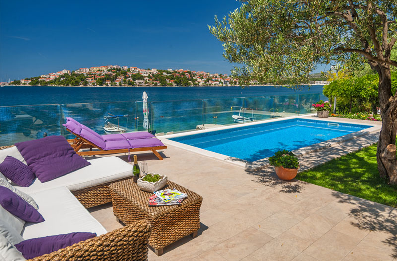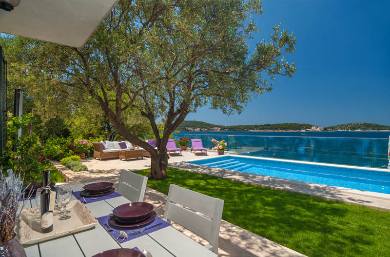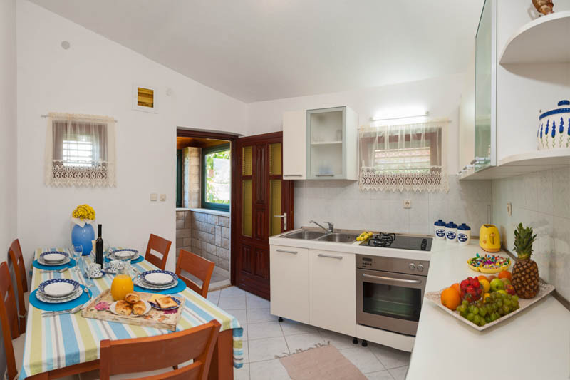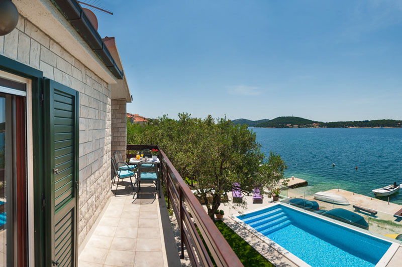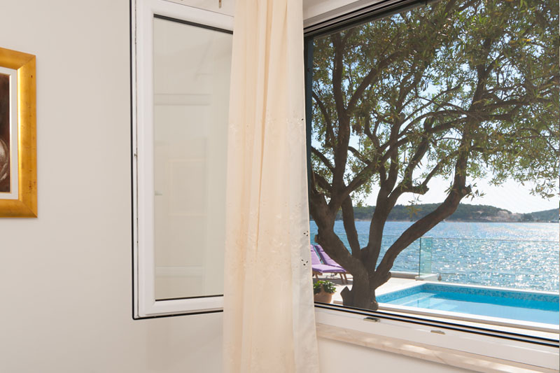 The house has two floors,each consisting of 2 master bedrooms,bathroom,kitchen and a living room. There is also a beautiful garden,a barbecue,summer kitchen and a external family table,along with the private sea dock with sun beds on it. House can accomodate 8+2 people.Bed linen and towels are provided for free. Air condition,internet,heating and parking (park right in front of the house) are included in the price. Our villa is fully furnished and equiped.